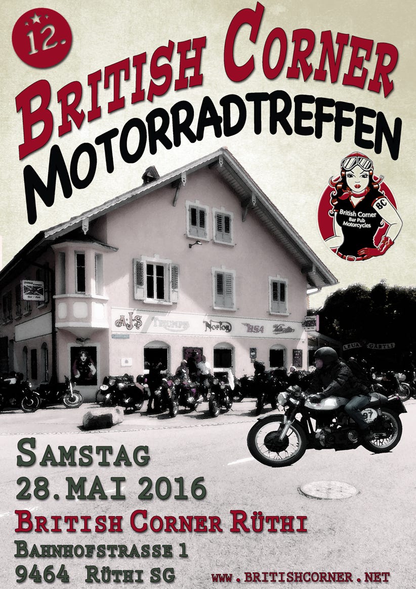 Jetzt schon, freuen wir uns auf das 20. Treffen und hoffen dich und viele interessierte Leute mit ihren speziellen Motorrädern im British Corner begrüssen zu dürfen.