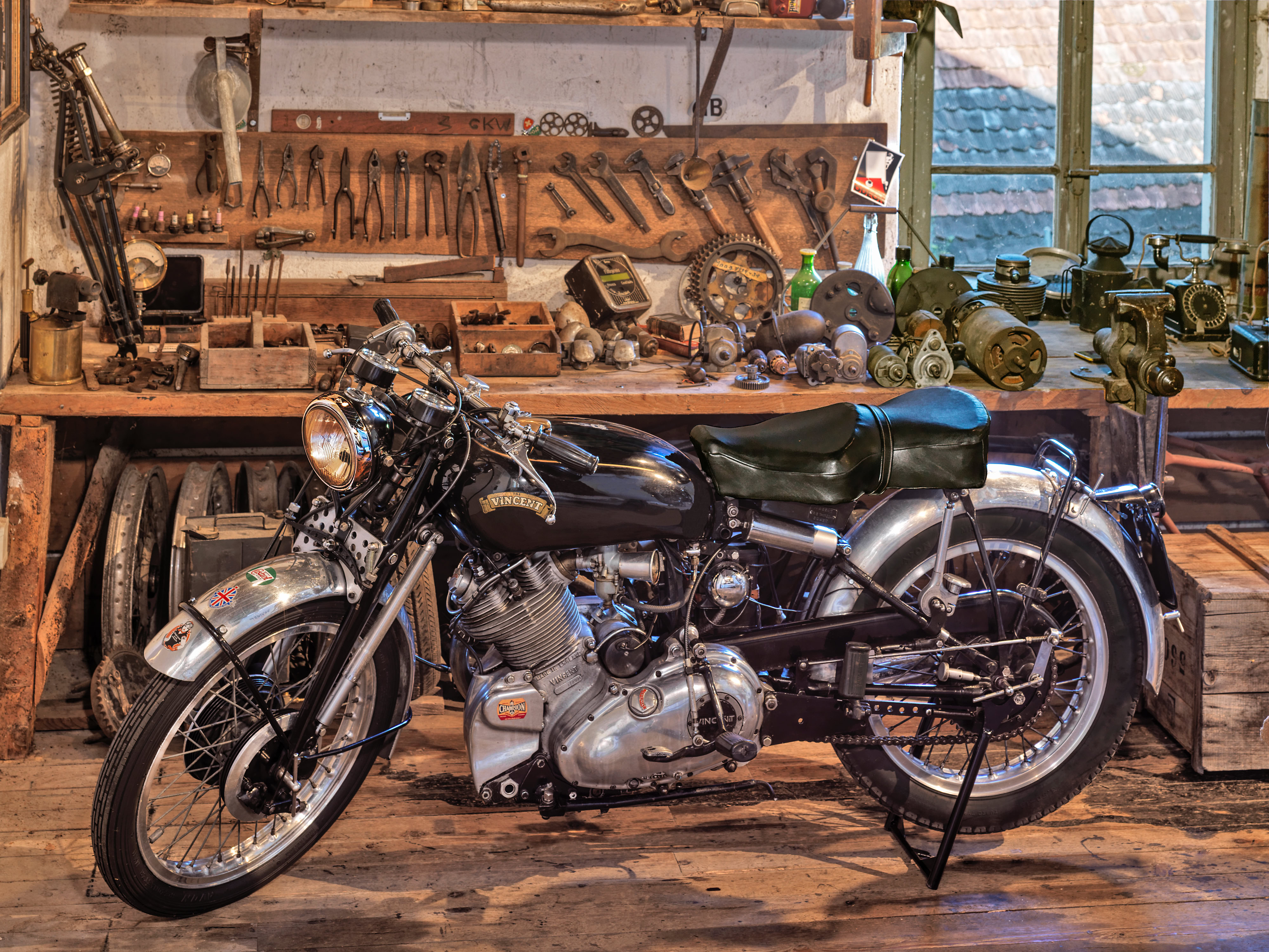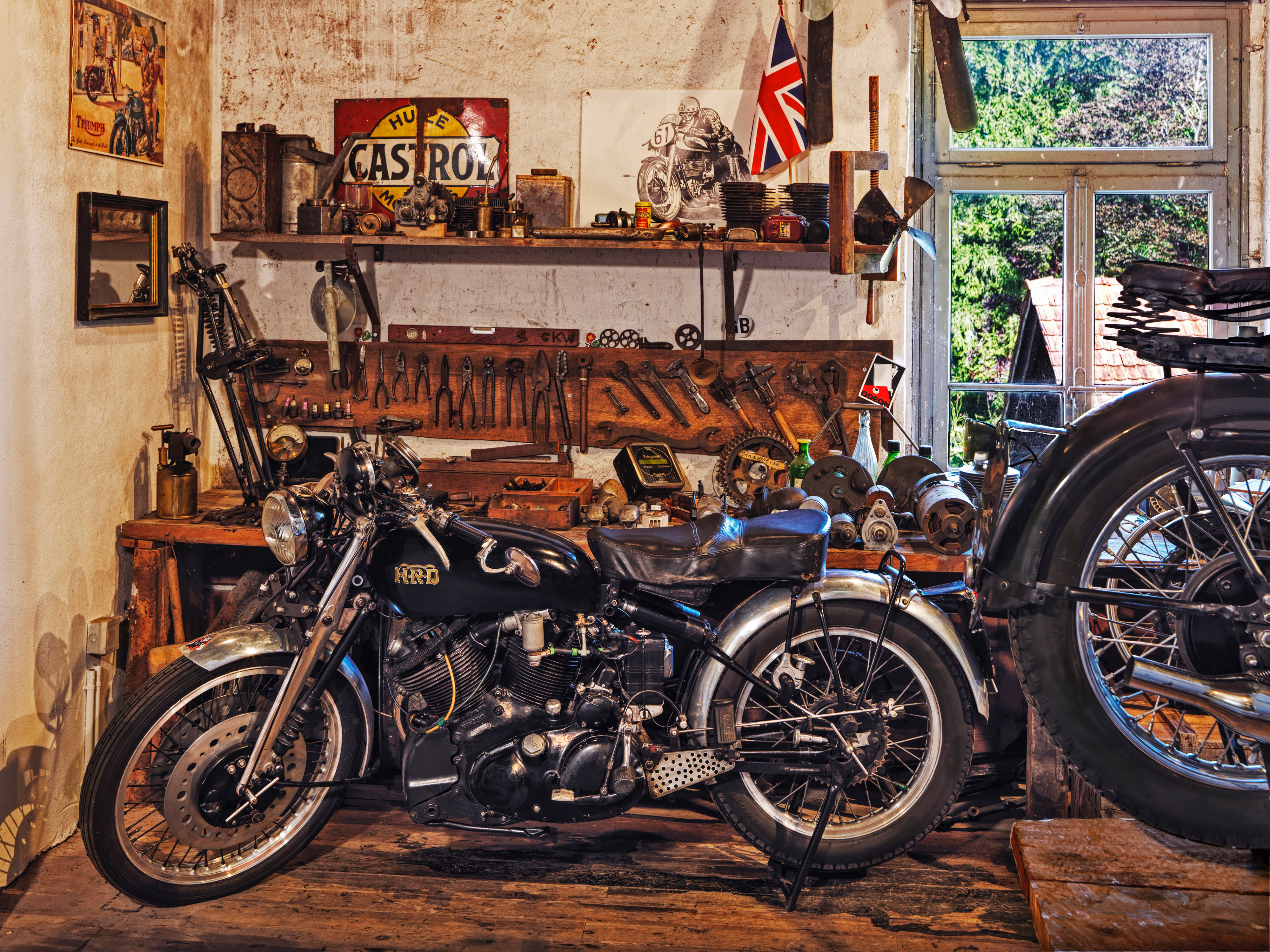Im Lager des Löwengarten sind einige englische Motorräder ausgestellt. Es sind keine Raritäten, sondern normale Motorräder die in vergangenen Zeiten auf den Strassen zu sehen waren.